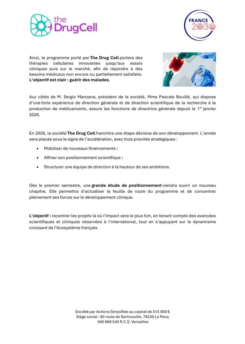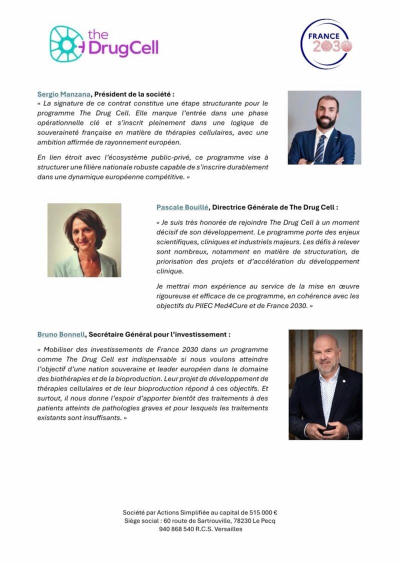 Supported by the French government as part of the France2030 initiative, in collaboration with the Secrétariat général pour l’investissement and the PIIEC Med4Cure, this program is primarily aimed at strengthening France’s health and industrial sovereignty, with a clear ambition to establish a European leadership role in the field of biotherapies.